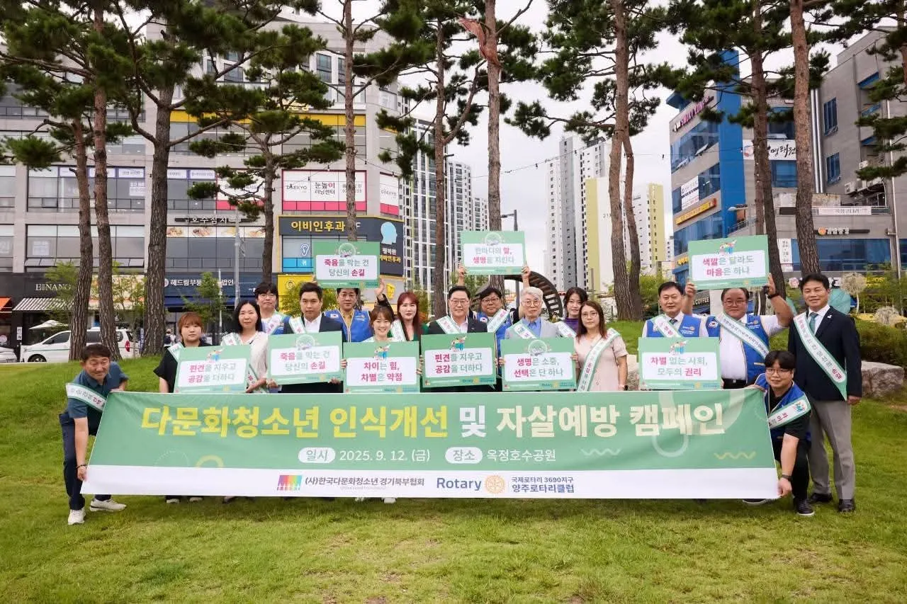 (사)한국다문화청소년협회 경기북부지부와 국제로타리 3690지구 양주로타리클럽이 공동 주최한 ‘다문화청소년 인식개선 및 자살예방 캠페인’이 2025년 9월 12일 옥정호수공원에서 개최됐다.